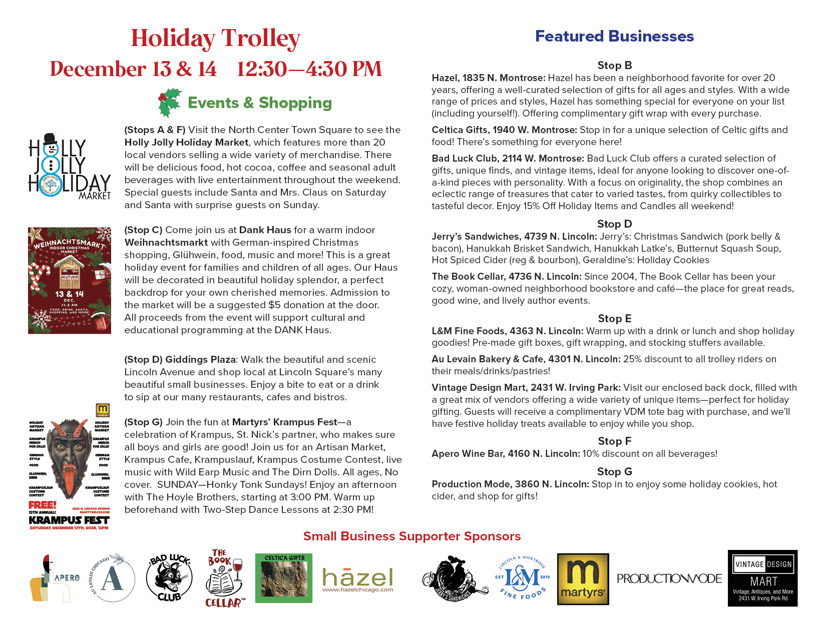 We kindly ask for a $5 entry donation to support the North Center Neighbors Association, our volunteer-run organization.