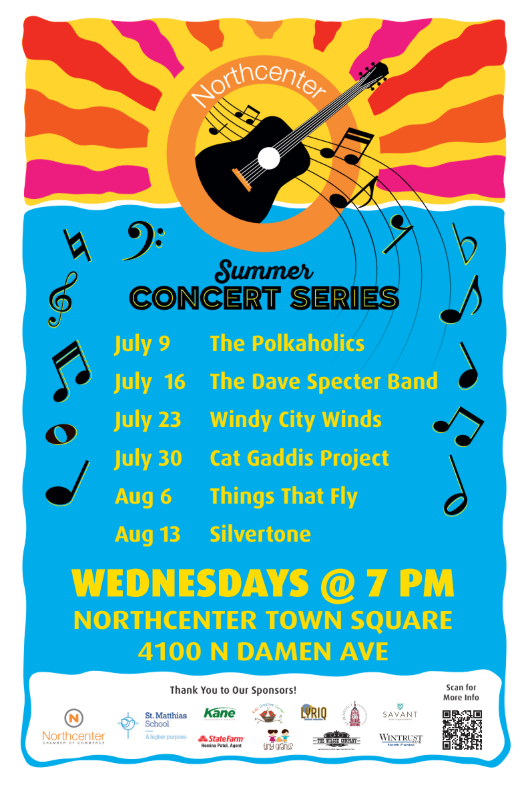 The Northcenter Chamber of Commerce's annual Summer Concert Series returns in 2025! Join us for free music and fun on Wednesday nights. Bring a chair, invite your neighbors, and get to know some new ones every week!